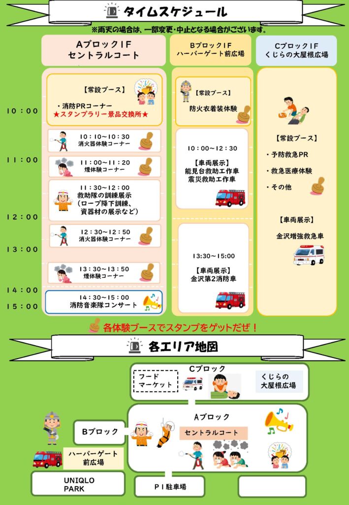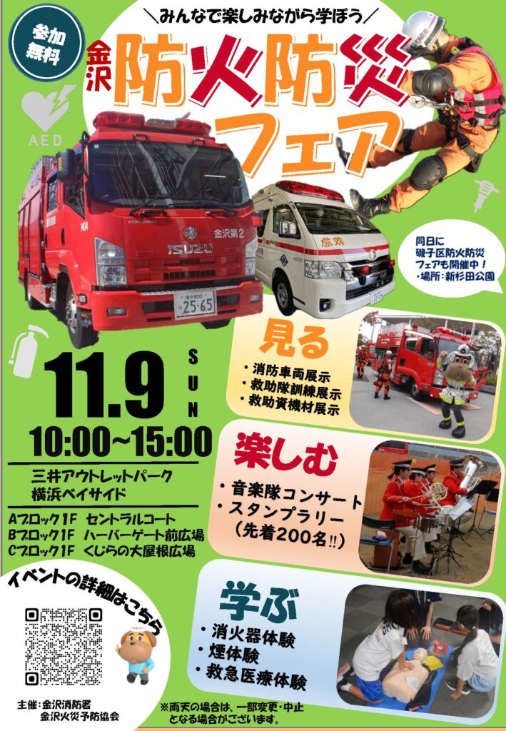 金沢防火・防災フェアは、市民の皆さまに防火・防災への理解と関心を深めていただくことを目的とした体験型イベントです。音楽隊によるコンサートや、消火器・煙体験、救急医療体験など、
